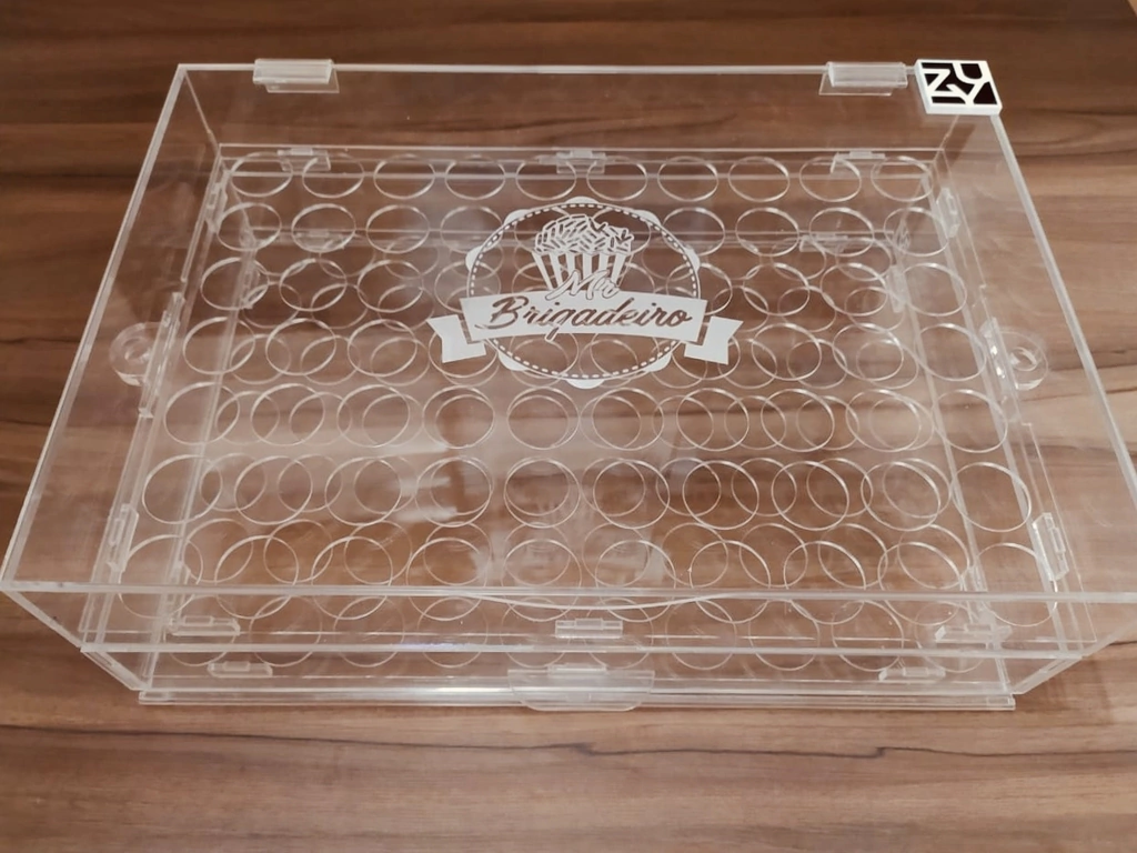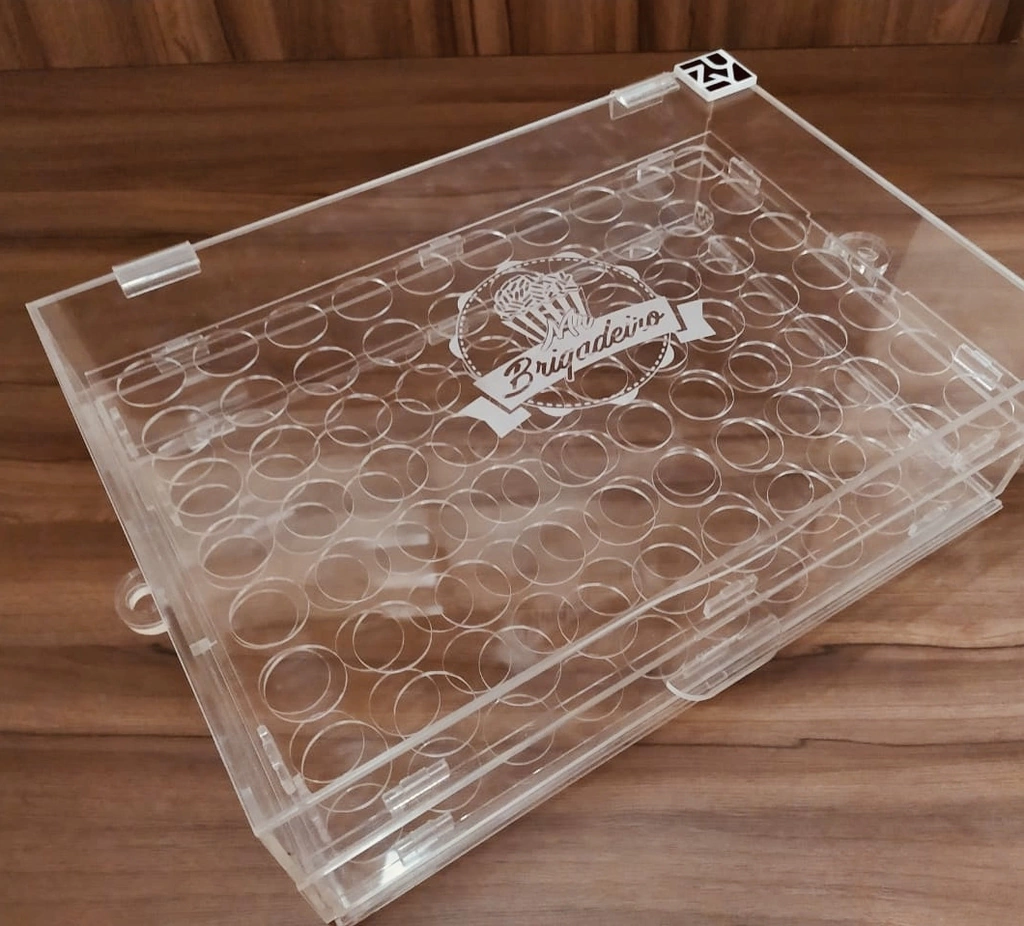 Caixa / Expositor para Doces / Brigadeiros em Acrílico - 140 Unidades + Gaveta