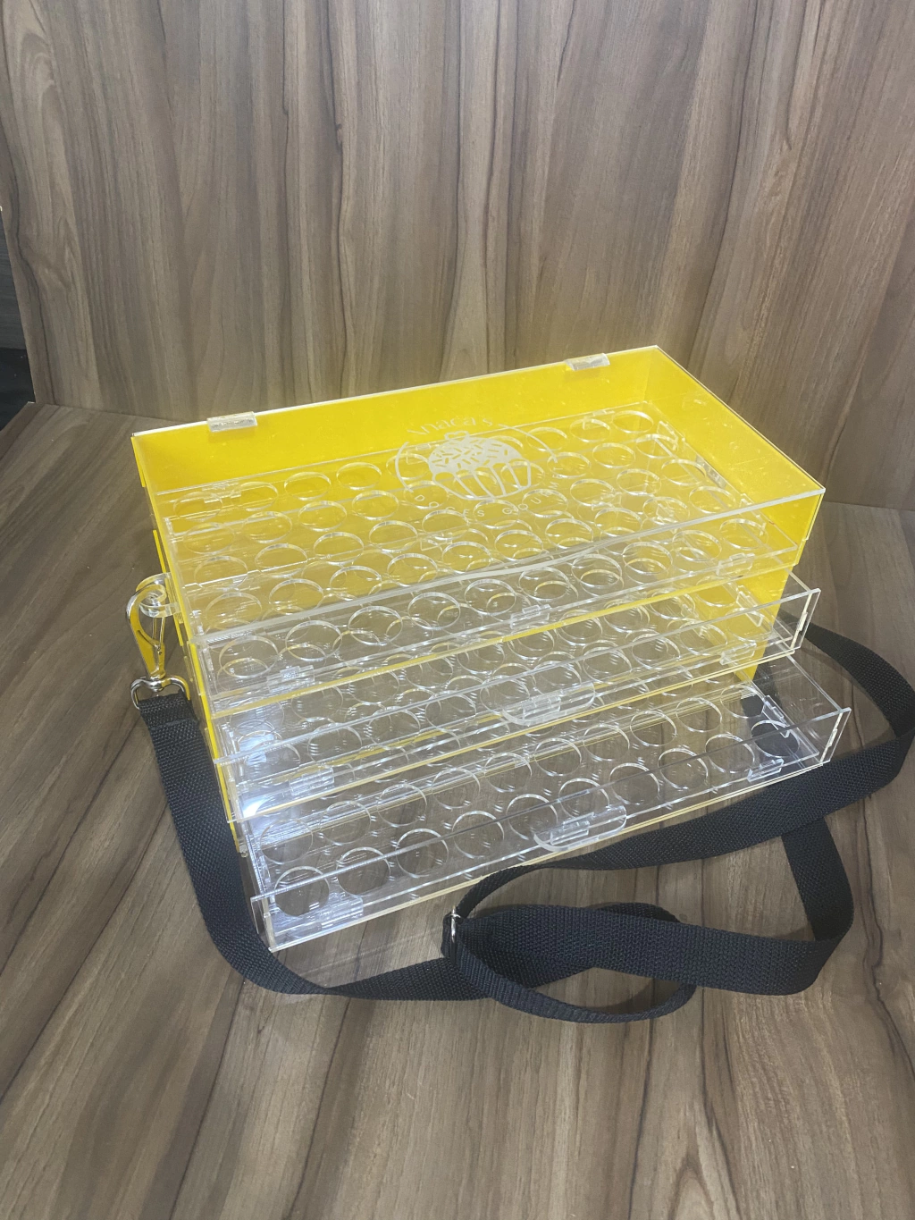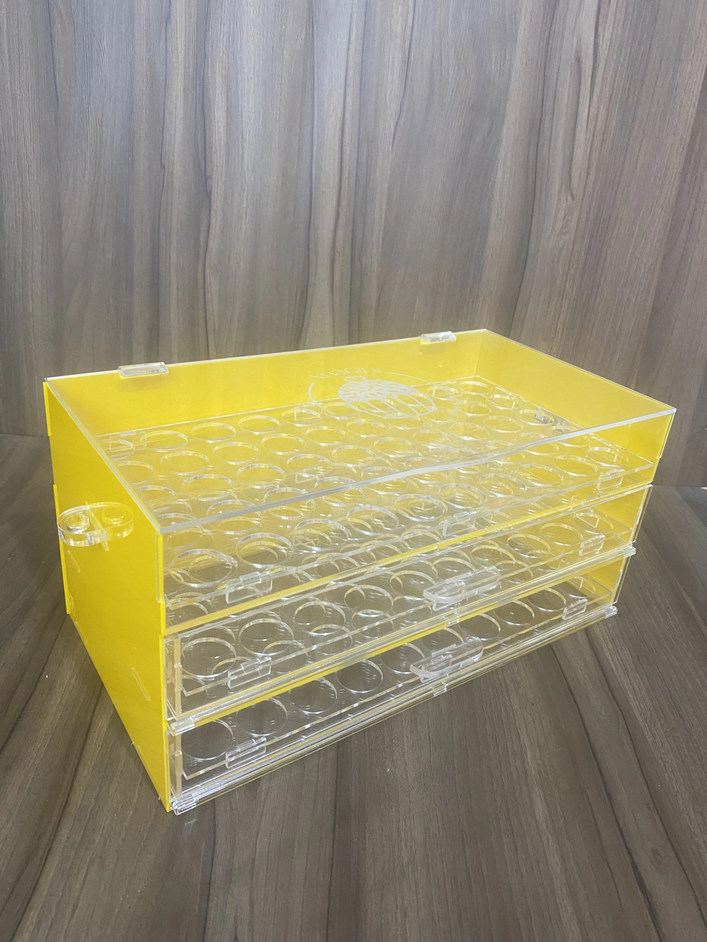 Caixa / Expositor para Doces / Brigadeiros em Acrílico - 150 Unidades + Gaveta + Alça – Forminhas nº4 (Ideais para brigadeiros de 20 a 25g aproximadamente)