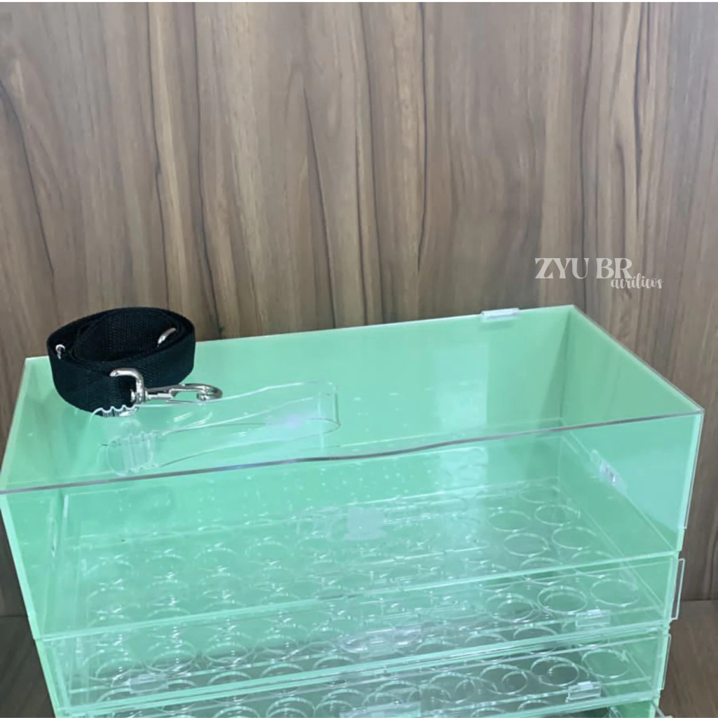 Caixa / Expositor para Doces / Brigadeiros em Acrílico - Parte superior SEM Tampa + 2 Gavetas + Alça – Forminhas nº4 (Ideais para brigadeiros de 20 a 25g aproximadamente)