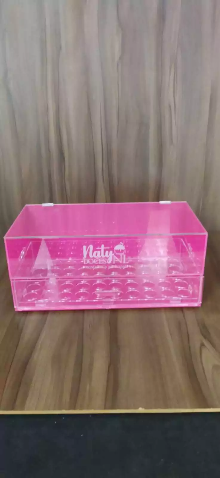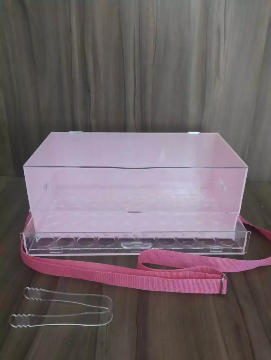 Caixa / Expositor para Brownies/ Brigadeiros em Acrílico - 50 Unidades + Gaveta + Alça – Forminhas nº5 (Ideais para brigadeiros de 15 a 20g aproximadamente)