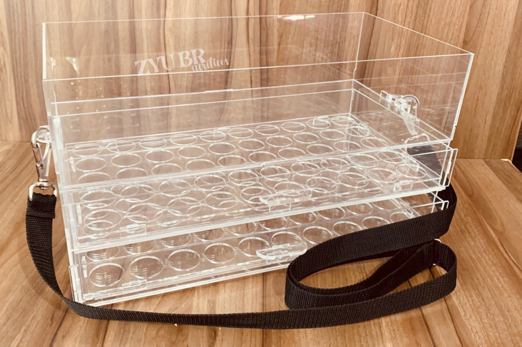 Caixa / Expositor para Doces / Brigadeiros em Acrílico - Parte superior sem Tampa + 2 Gavetas + Alça – Forminhas nº4 (Ideais para brigadeiros de 20 a 25g aproximadamente)